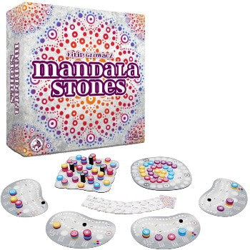 Welcome to Mandala Stones, a game of tranquility and beauty! Arrange colorful stones to create a stunning work of art together with your friends. However, while there are many creators, there can be only one winner. Influence artists, positioning them cleverly on the main board, to form towers out of collected Stones, which you then display onto the mandala board at an opportune moment to score Victory Points.