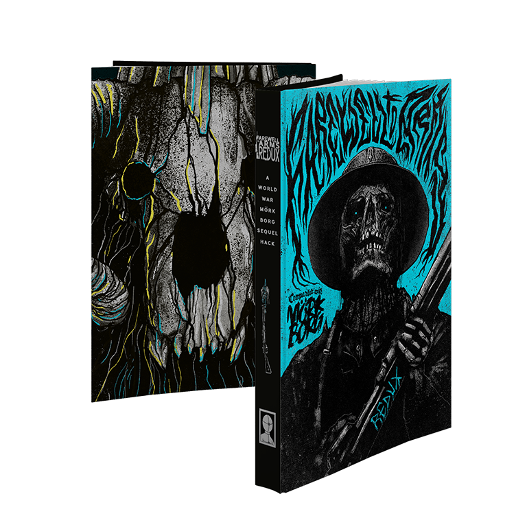 Farewell to Arms REDUX is an independent production by rivethead games and is not affiliated with Ockult Örtmästare Games or Stockholm Kartell. It is published under the MÖRK BORG Third Party License.