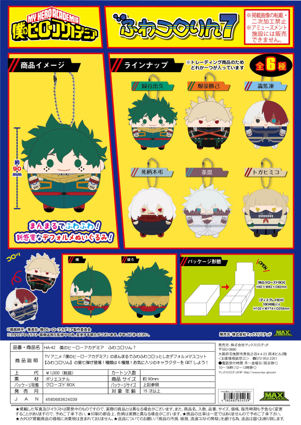 My Hero Academia FUWA KORORIN 7 plush mascot blind box