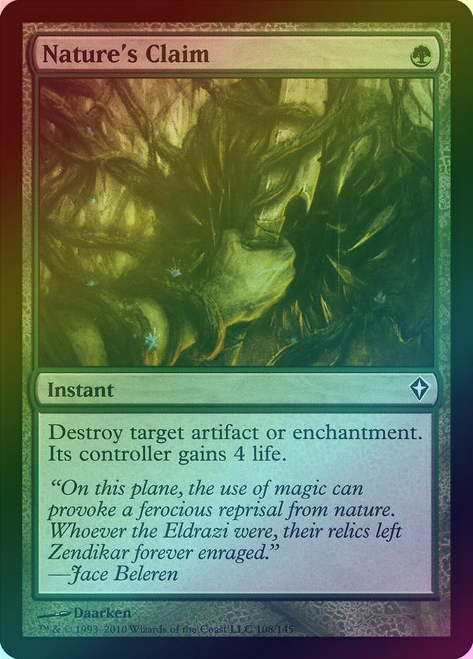 Nature's Claim (Foil) (WWK) is available at 401 Games Canada! You can find lots of other Magic: The Gathering Singles products as well as more great items from Worldwake!