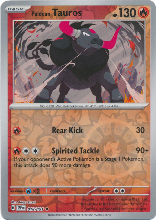 Paldean Tauros - 018/191 - Uncommon - Reverse Holo