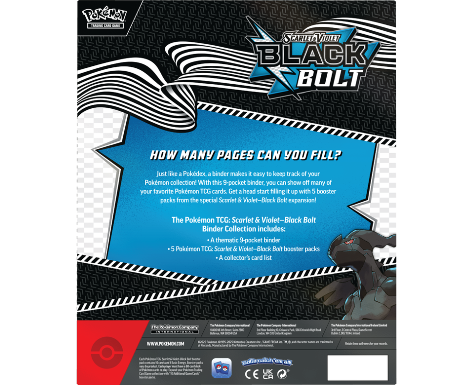 The Pokémon TCG: Scarlet & Violet—Black Bolt Binder Collection includes: