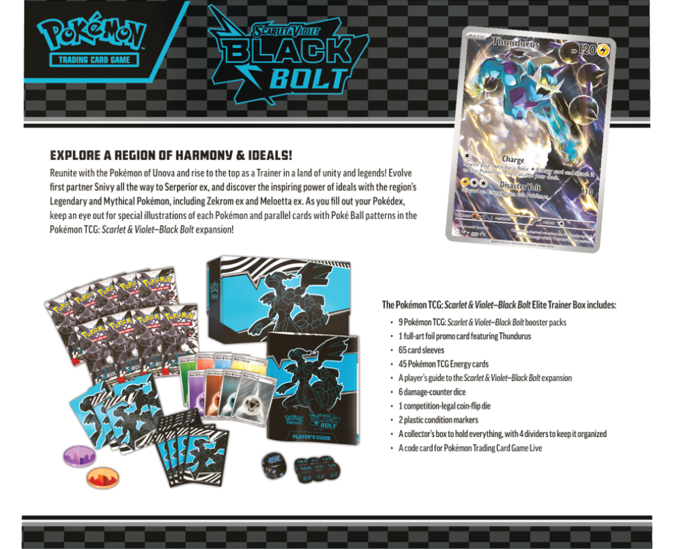 The Pokémon TCG: Scarlet & Violet—Black Bolt Elite Trainer Box includes: