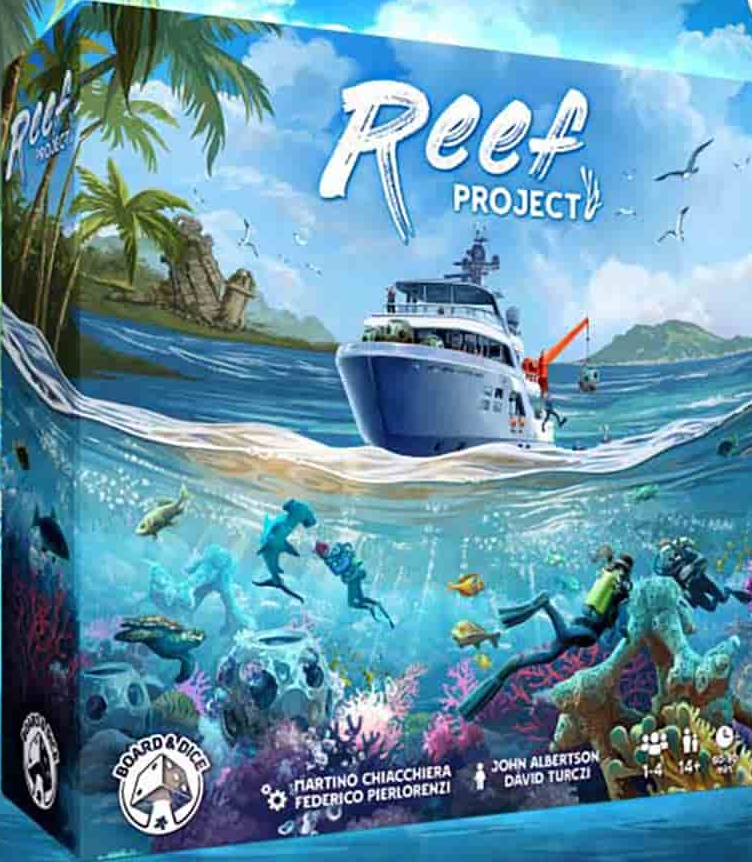 Reef Project is a sandbox euro game, where you travel between the islands (point to point movement), fight for majorities in the map sectors, fulfill missions (cards) and build your special action tableau by collecting crew tiles on your player board. Instead of traveling, you may recharge - it is an active pass, when you activate rewards reached on the VP track, so it becomes more powerful as the game progresses. Each player board comes with unique ability and it can be flipped to the B side for more asymmetric experience.