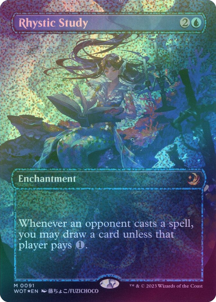 Rhystic StudyCasting Cost: Card Type: EnchantmentCard Text: Whenever an opponent casts a spell, you may draw a card unless that player pays .Artist: Fuzichoco