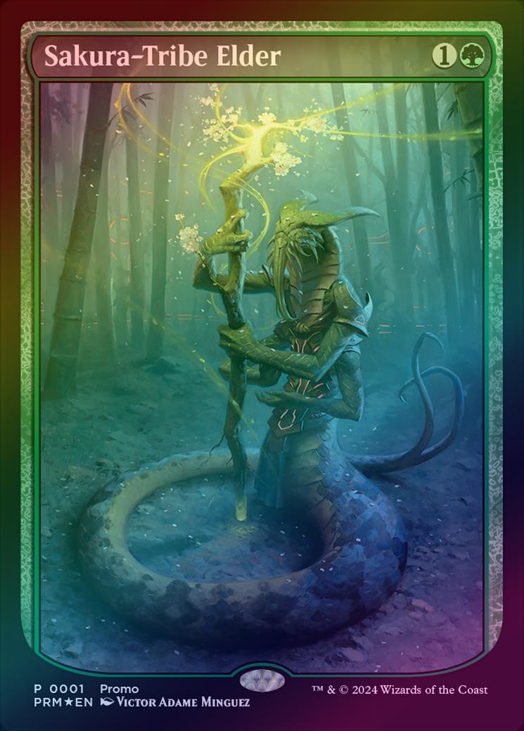 Sakura-Tribe ElderCasting Cost: Card Type: Creature - Snake ShamanPower/Toughness: 1/1Card Text: Sacrifice Sakura-Tribe Elder: Search your library for a basic land card, put that card onto the battlefield tapped, then shuffle.Artist: Victor Adame Minguez