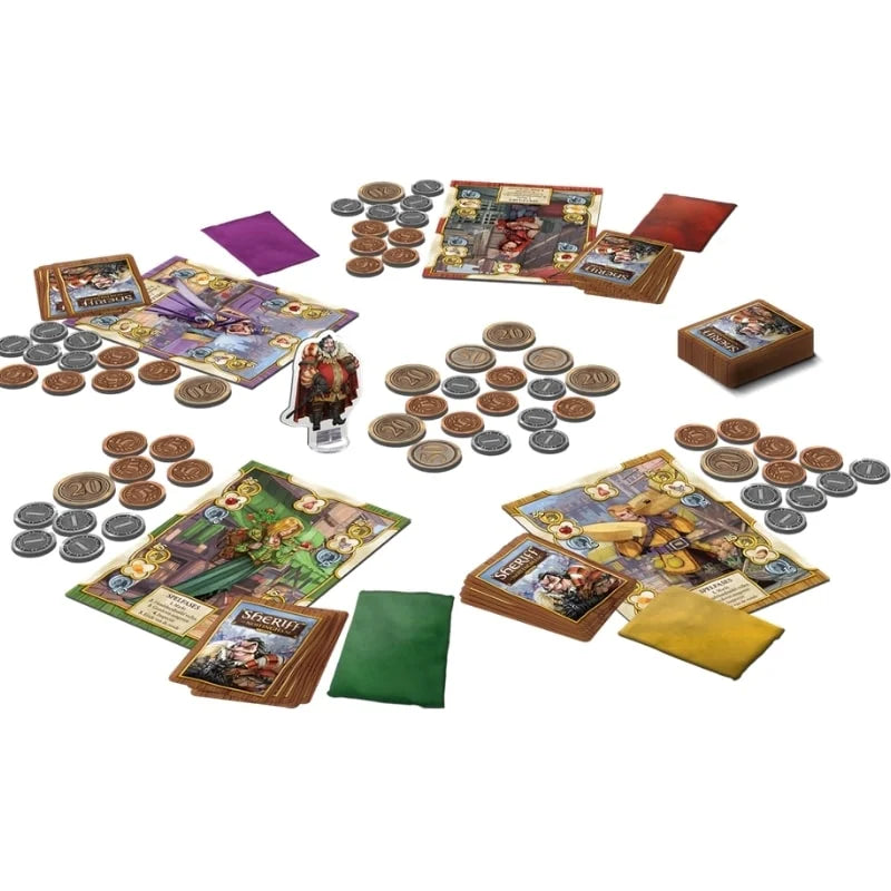 The bustling market in Nottingham is filled with goods from all over the kingdom. Most of it is entirely legal, however, Prince John is looking to make sure no contraband gets sold. He’s tasked the Sheriff to inspect Merchant’s wares, looking for any illicit goods. The Sheriff’s shrewd, but not above taking a bribe to look the other way. Which Merchant will end up getting the best goods through and make the largest profits in the market stalls?