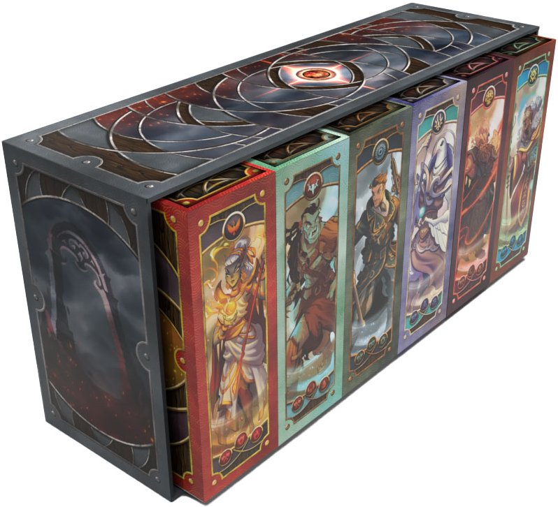 This set includes 6 Summoner Wars Second Edition Magnetic Deck Boxes – Phoenix Elves, Tundra Orcs, Cloaks, Skyspear Avians, Fungal Dwarves and Eternal Council nestled in a display box. Each deluxe deck box features a magnetic lid and is designed to store one sleeved Summoner Wars Second Edition Faction Deck and one full set of dice and tokens. Perfect for the Summoner on the go!