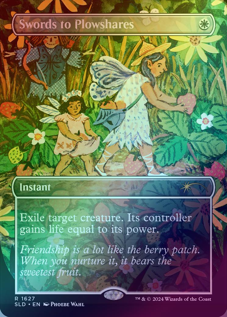 Swords to PlowsharesCasting Cost: Card Type: InstantCard Text: Exile target creature. Its controller gains life equal to its power.Flavour Text: Friendship is a lot like the berry patch. When you nurture it, it bears the sweetest fruit.Artist: Phoebe Wahl