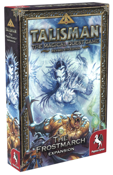 The Frostmarch expansion features 4 new character cards and plastic figures, 84 Adventure Cards, 20 Spell Cards, 24 Warlock Quest Cards, and 3 Alternative Ending Cards - including a final climactic battle with the Ice Queen.