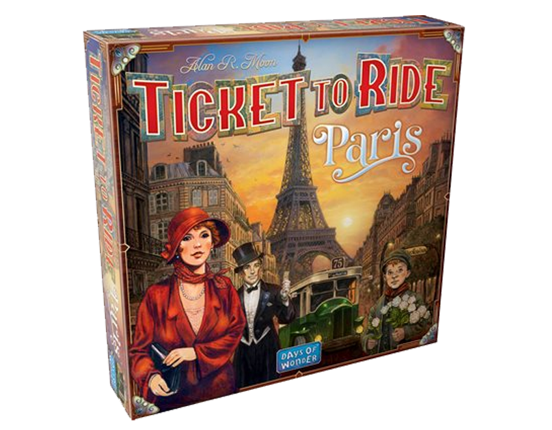 Enjoy the City of Lights! Find yourself transported to the glamorous Paris of the roaring twenties. Jump aboard an open platform bus, cruise down les Champs-Elysées, admire the Eiffel Tower and conclude your day by enjoying a picturesque sunset from a charming terrace in Montmartre. In this fast-paced Ticket to Ride game, players race one another to visit the most iconic locations of the city and complete their Destination Tickets. The winning player will efficiently utilize the Parisian bus network in this new and very unique board map.