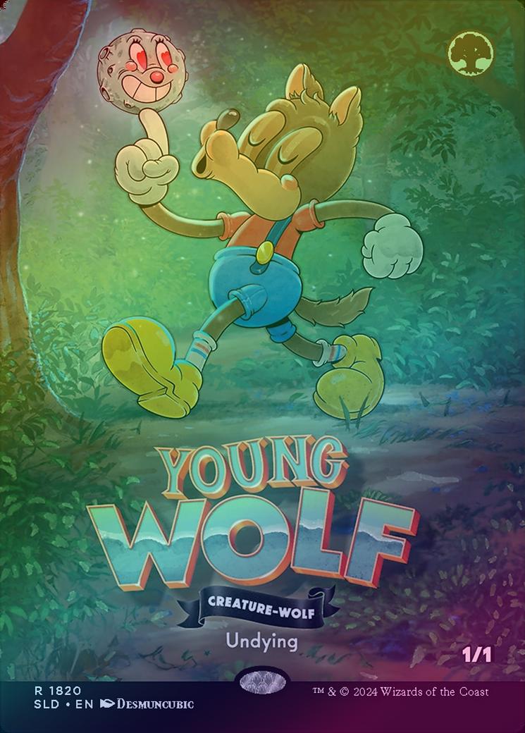 Young WolfCasting Cost: Card Type: Creature - WolfPower/Toughness: 1/1Card Text: Undying (When this creature dies, if it had no +1/+1 counters on it, return it to the battlefield under its owner's control with a +1/+1 counter on it.)Artist: Desmuncubic